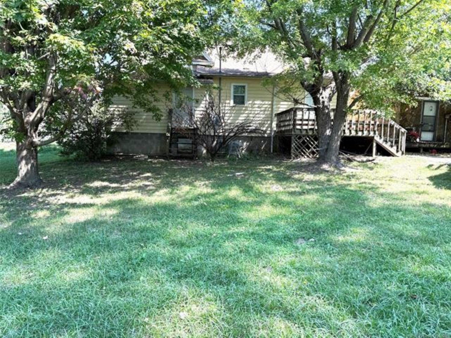 Charming Home needing a little TLC. Nice Living Area, Large Kitchen w/dining area, plenty of updated cabinets and appliances. Large Laundry room w/pantry area and 1/2 bath. Primary Bedroom and Full bath downstairs and 2 bedrooms and full bath upstairs. This home sits on 2 corner lots and the backyard is spacious. Storage, Carport, and More. Great Location, right across the road from Okemah Public Schools.
